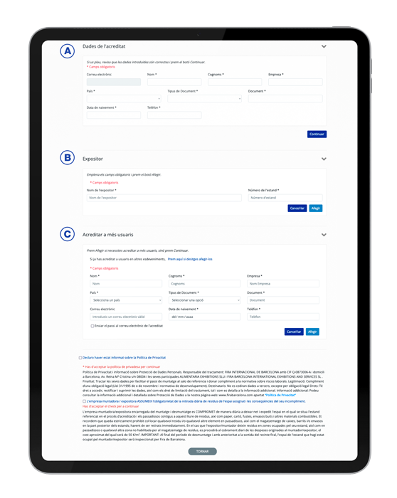 - Acredita tot el teu equip a l’opció: “Si necessites acreditar més usuaris” (#C)