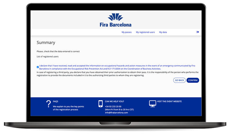 If you have encountered any complications or have any questions, please contact infofira@firabarcelona.com or call the call centre: 932 332 000